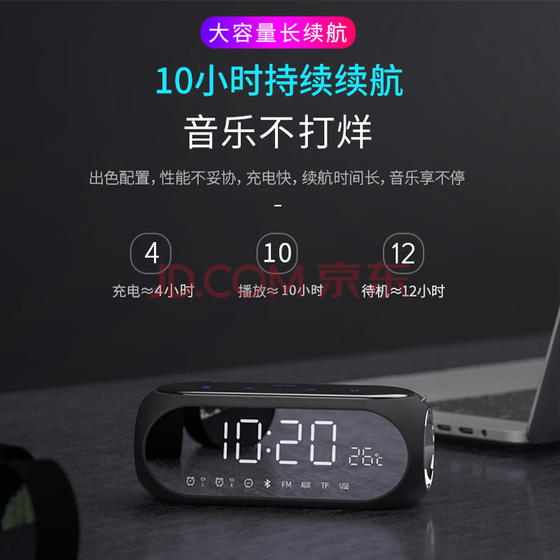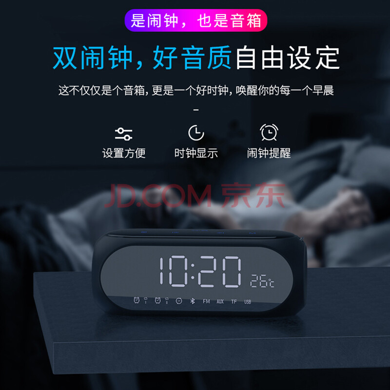 商品相册:索爱(soaiy)蓝牙音箱闹钟音响收音机一体机电脑高音质智能便携式低音炮无线音乐播放器可插卡液晶 S69黑第