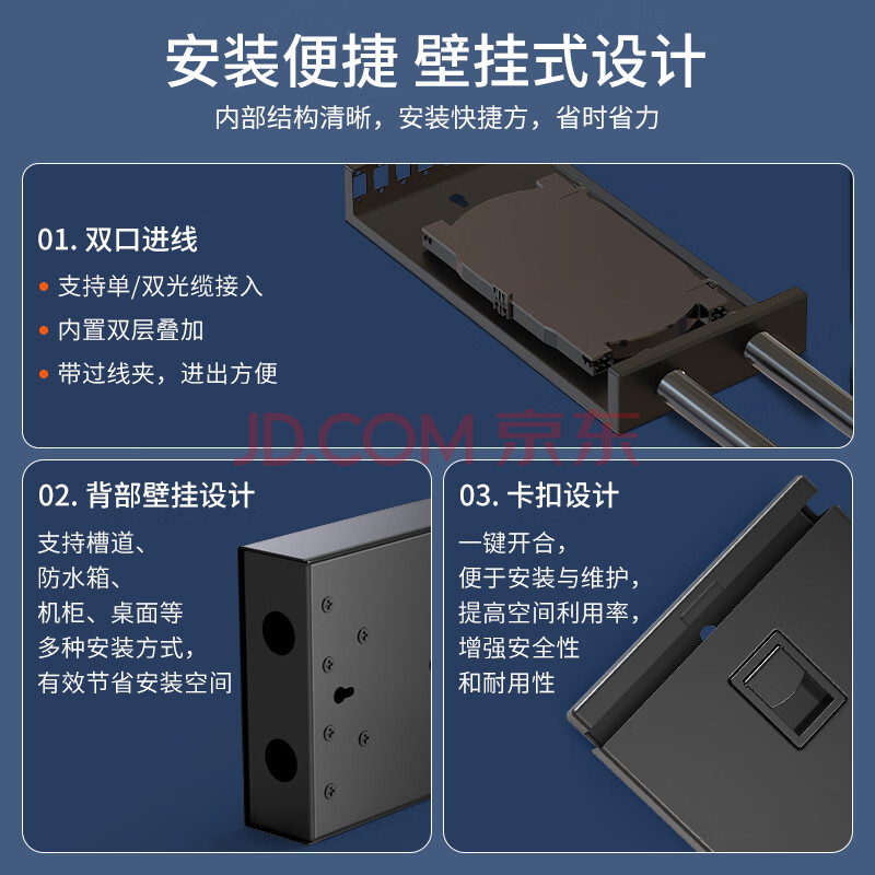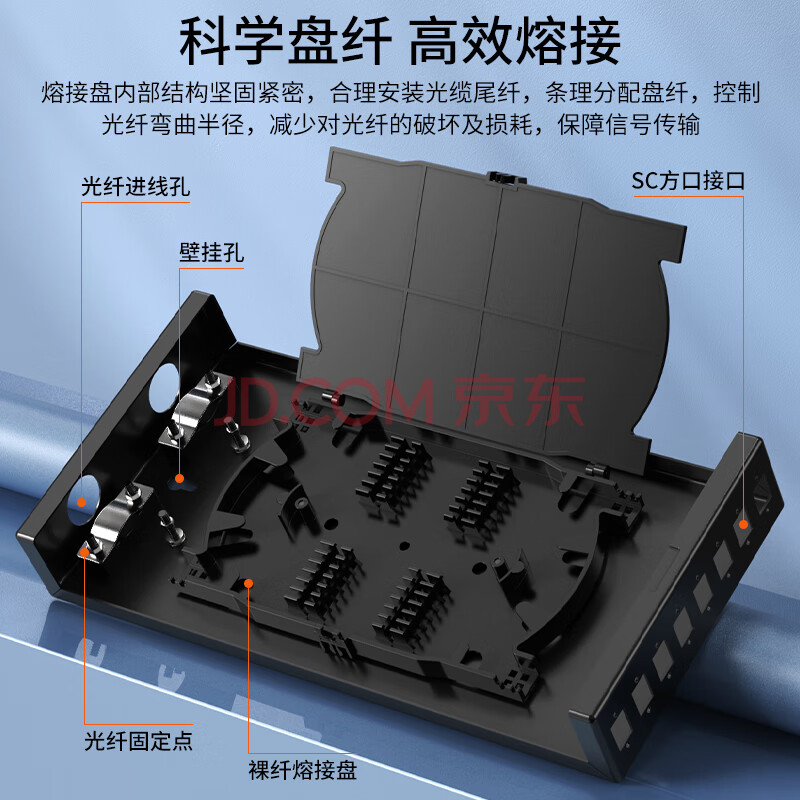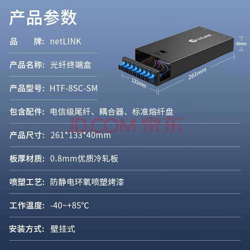 商品相册:netLINK光纤终端盒 8口8芯SC单模光纤熔纤盒 满配光纤尾纤法兰光缆接续盒 壁挂式1个 HTF-8SC-SM第