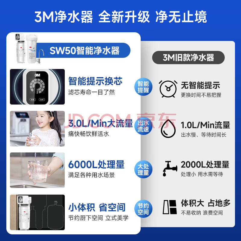 商品相册:3M净水器家用净水机小甜矿0废水直饮厨下智能3L/分大流量6000升处理量1200GSW50第