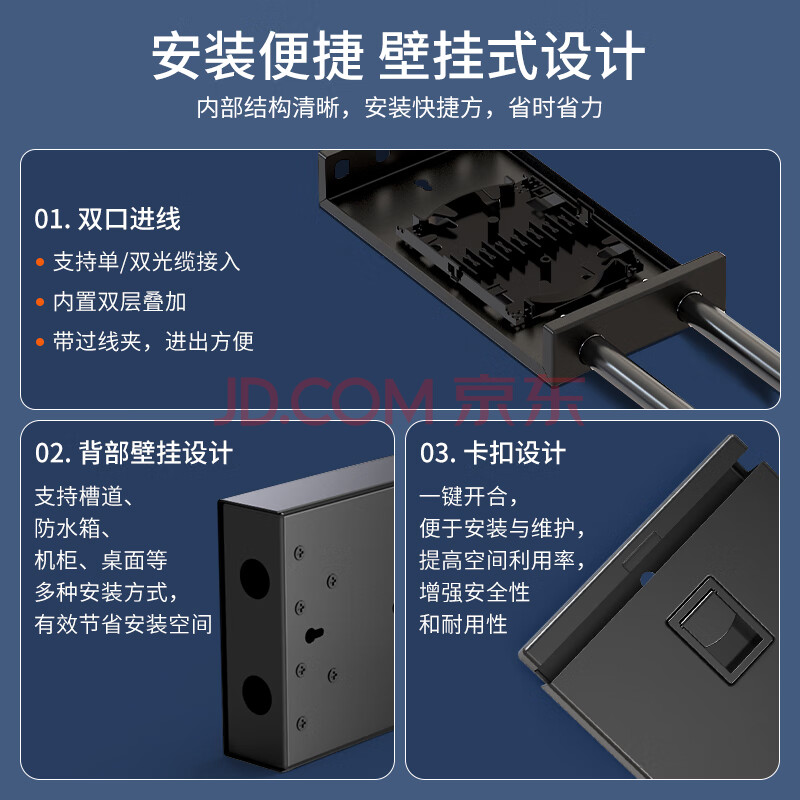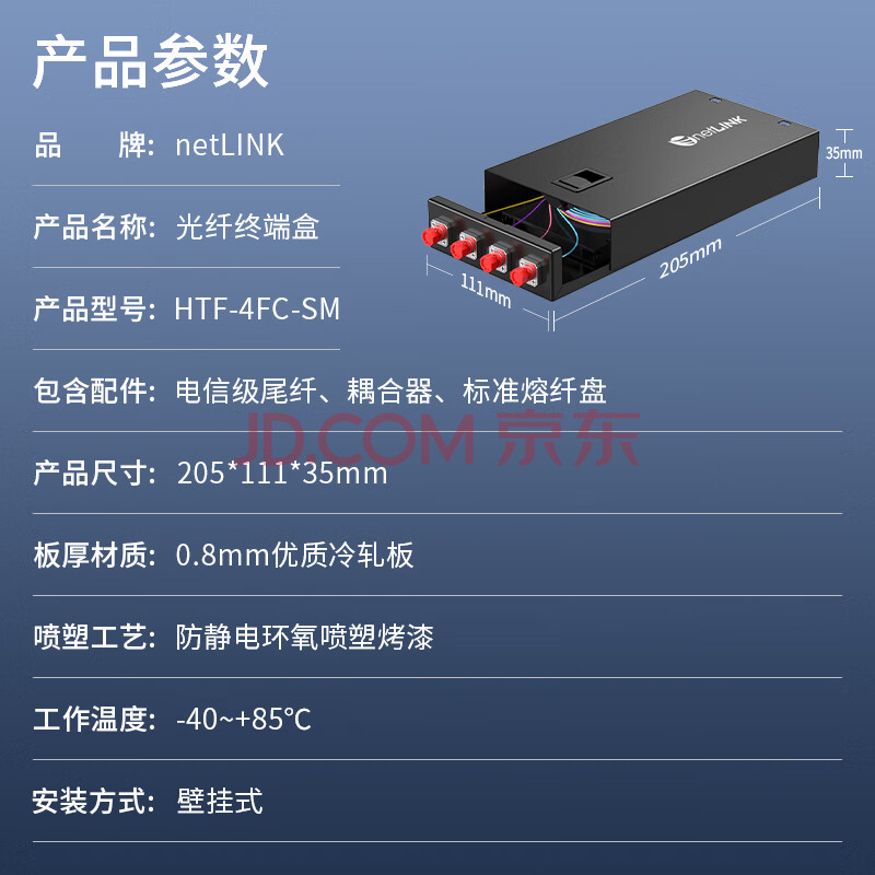 商品相册:netLINK光纤终端盒 4口4芯FC单模光纤熔纤盒 满配光纤尾纤法兰光缆接续盒 壁挂式1个 HTF-4FC-SM第