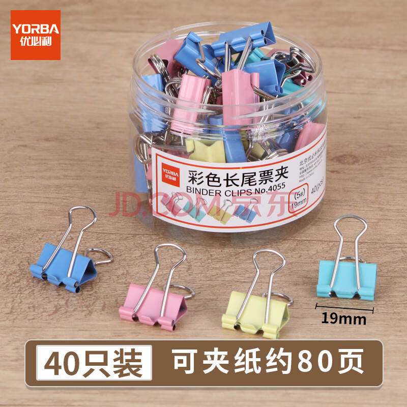 商品相册:优必利 长尾夹彩色燕尾夹金属铁夹凤尾夹文件夹蝴蝶夹小夹子 办公用品资料固定票夹 19mm40只/筒 4055第