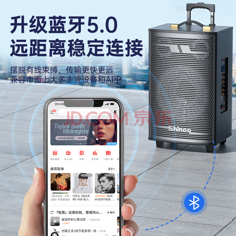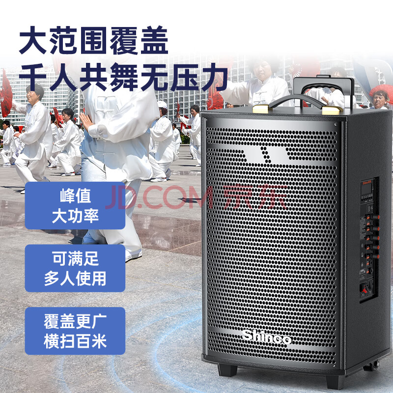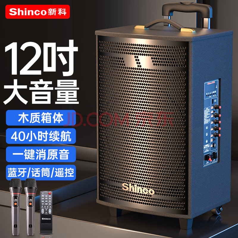 商品相册:新科T30广场舞音响户外大音量拉杆蓝牙音箱三喇叭重低音木质箱体家用K歌移动摆摊 12吋双咪第
