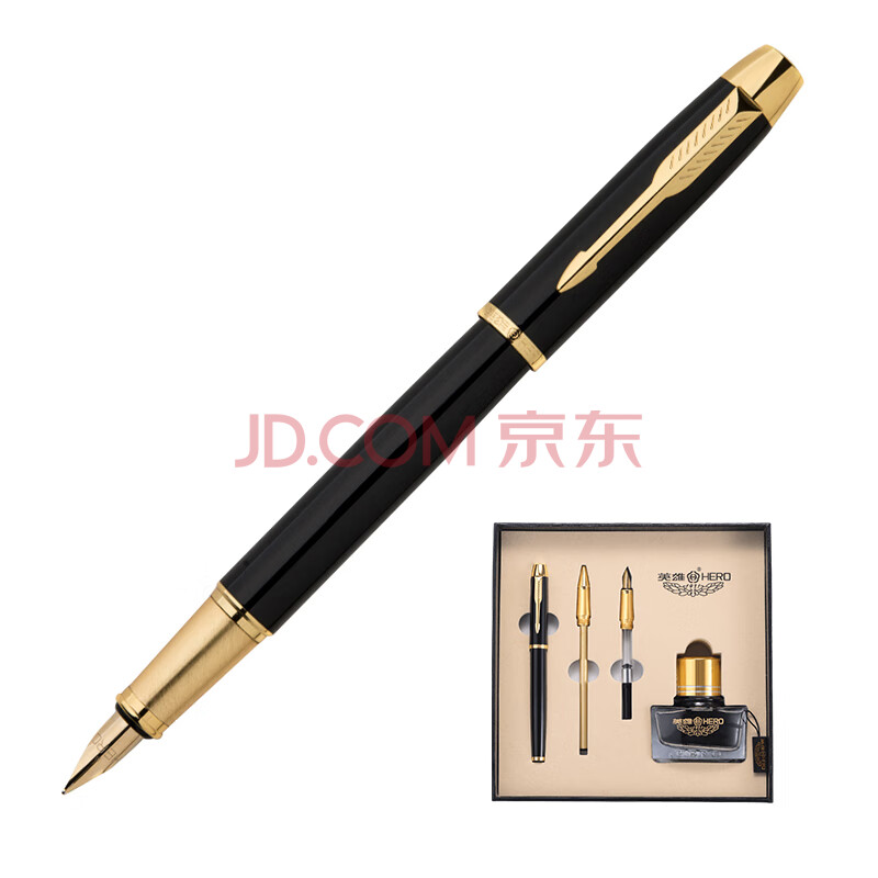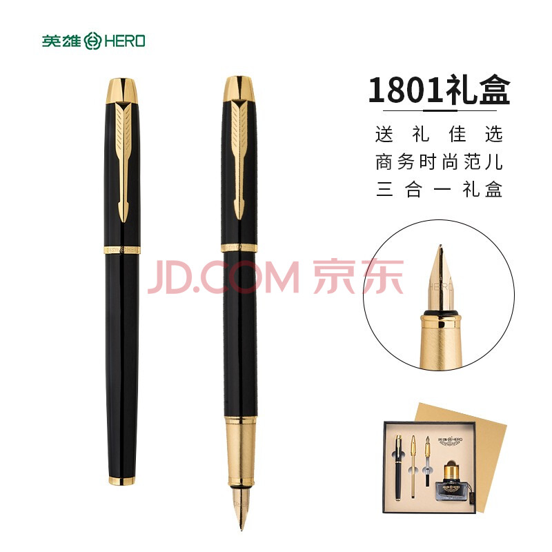 商品相册:英雄(HERO) 钢笔 1801黑丽雅金属杆铱金钢笔/特细铱金钢笔/宝珠笔礼品钢笔签字套装第