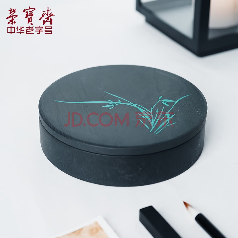 商品相册:【全网低价】荣宝斋 火锅砚台 带盖防蒸发不干墨可磨研墨条 初学者学生书法专用墨盒池 单太极印兰花(5寸)第