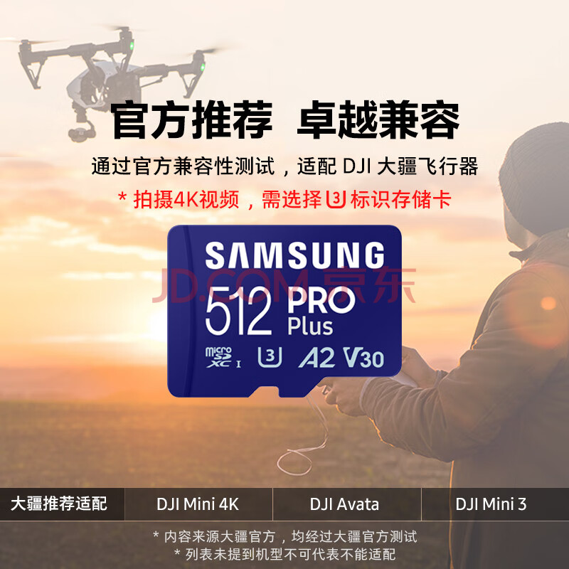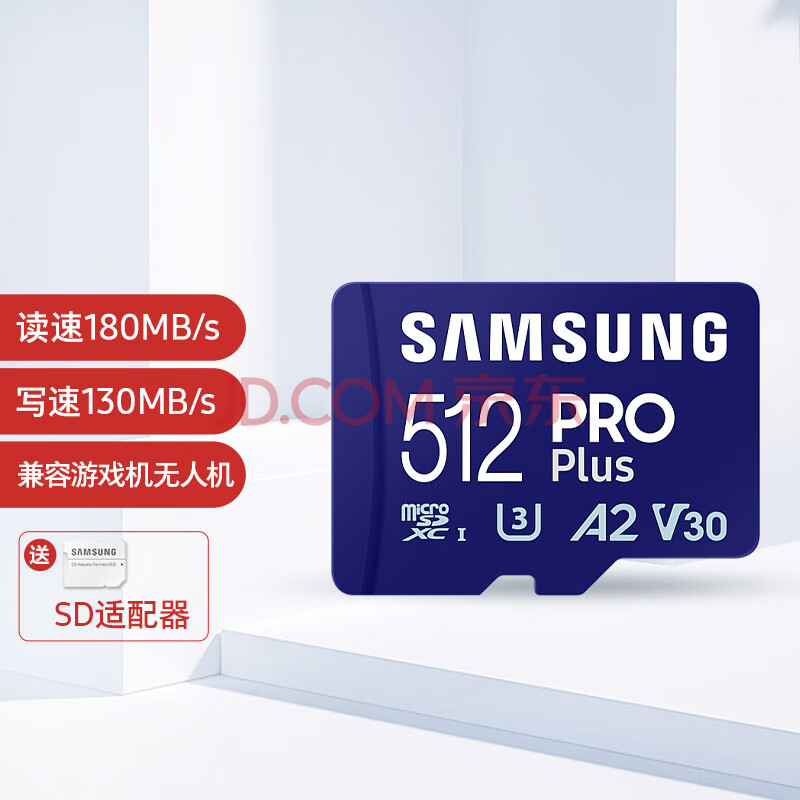 商品相册:三星(SAMSUNG)512GB TF MicroSD 内存卡 4K高速蓝卡 U3A2V30 读速180MB/s 游戏机无人机运动相机存储卡 PRO Plus第