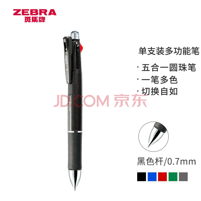 商品相册:斑马牌(ZEBRA)五合一多色笔(0.7mm四色圆珠笔+0.5mm自动铅笔)黑蓝红绿学生商务办公签字笔B4SA2 黑色杆第