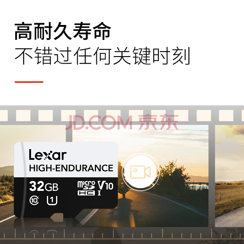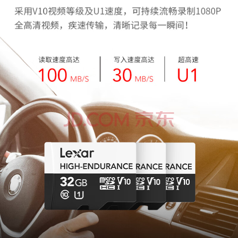 商品相册:雷克沙(Lexar)32GB TF(MicroSD)存储卡 C10 UHS-I 读100MB/s 高度耐用 行车记录仪&安防监控专用第