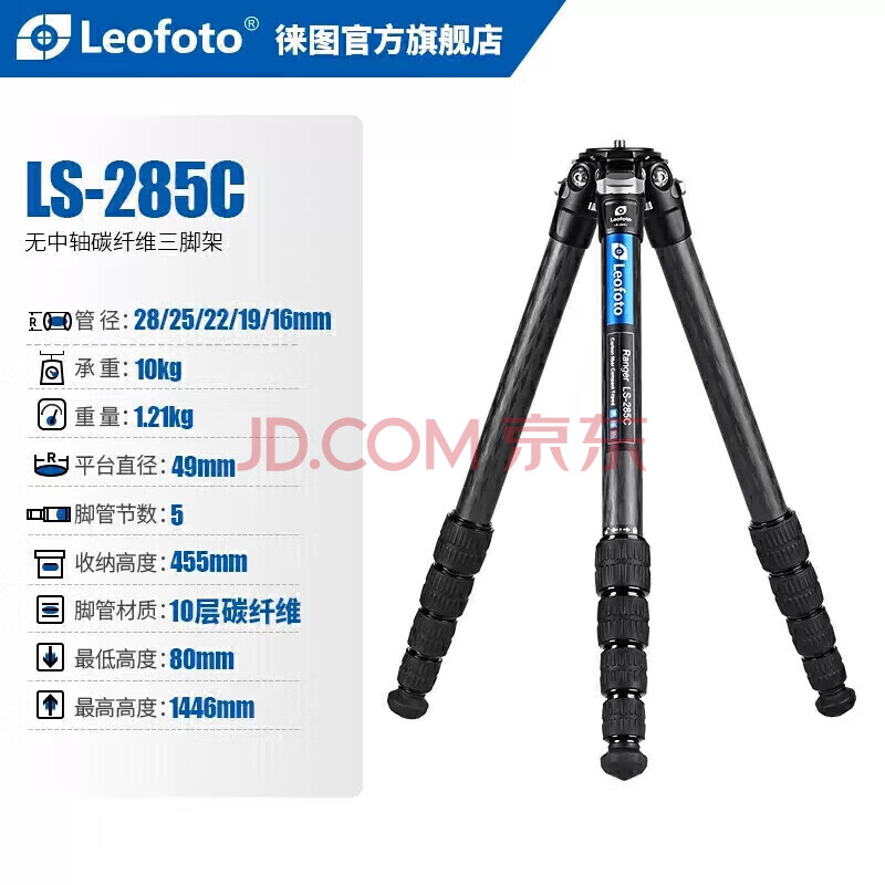 商品相册:徕图(Leofoto)三脚架 碳纤维无中轴摄影摄像相机单反微单轻便旅行稳定专业三脚架 LS-285C(单脚架)第