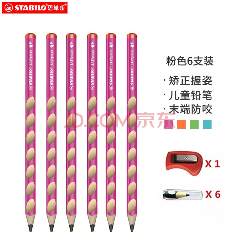 商品相册:思笔乐(STABILO)洞洞笔铅笔6支 德国进口儿童三角杆铅笔 儿童启蒙矫姿铅笔练字笔 粉色322/01HB第