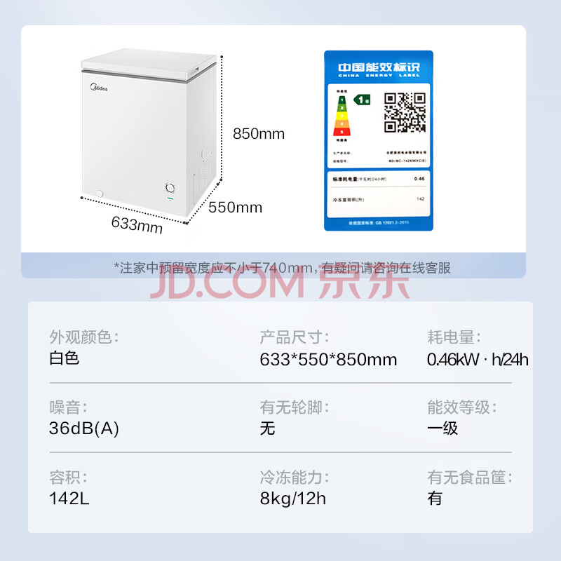 商品相册:美的(Midea)142升 冷藏冷冻转换冰柜 家用囤货小冷柜 一级能效 母婴母乳小冰箱 BD/BC-142KMXC(E)第