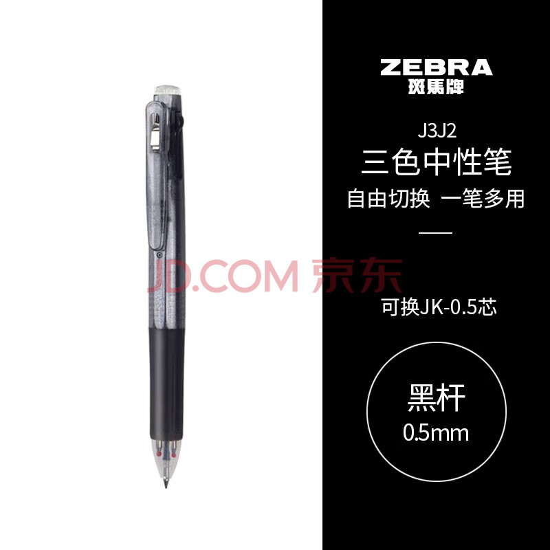 商品相册:斑马牌(ZEBRA)多功能三色中性笔 黑蓝红0.5mm多色笔 学生商务办公签字笔J3J2 黑色杆第