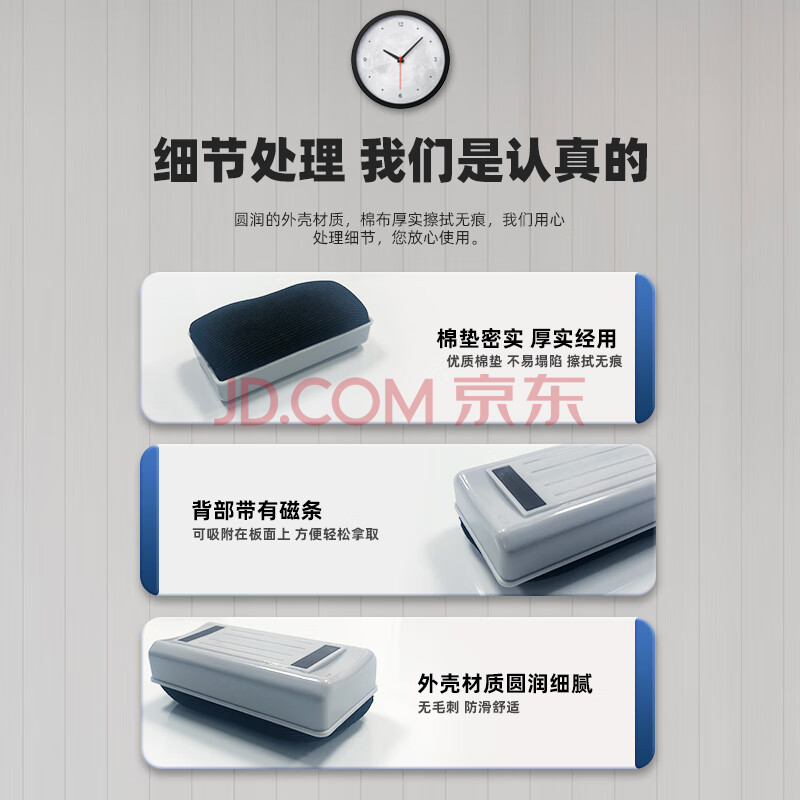 商品相册:比比牛 磁性板擦 3个装白板擦 绒布板刷 黑板白板可用 BBN-BC03-J第