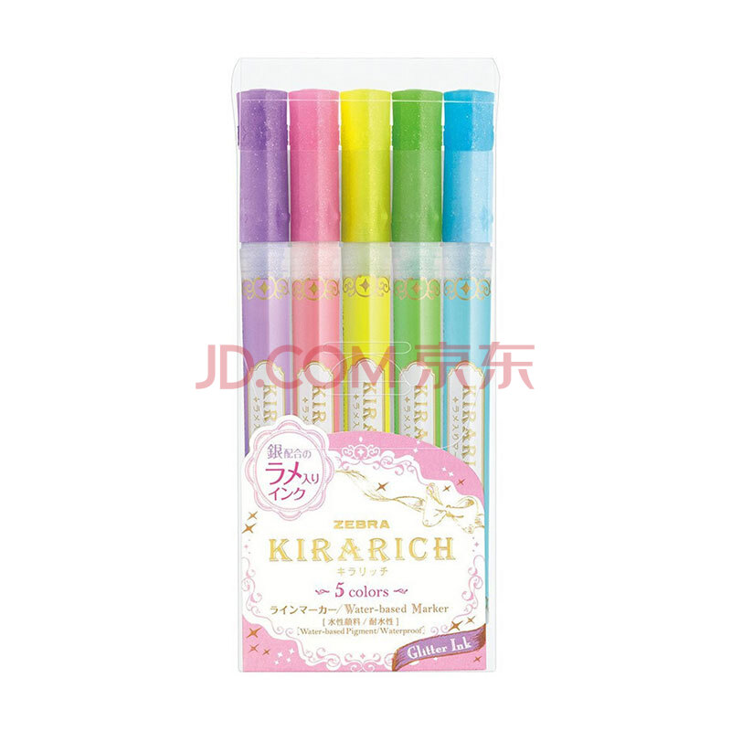 商品相册:斑马牌 (ZEBRA)五色套晶亮荧光笔 彩色标记笔 Kirarich系列学生记号笔 WKS18-5C第
