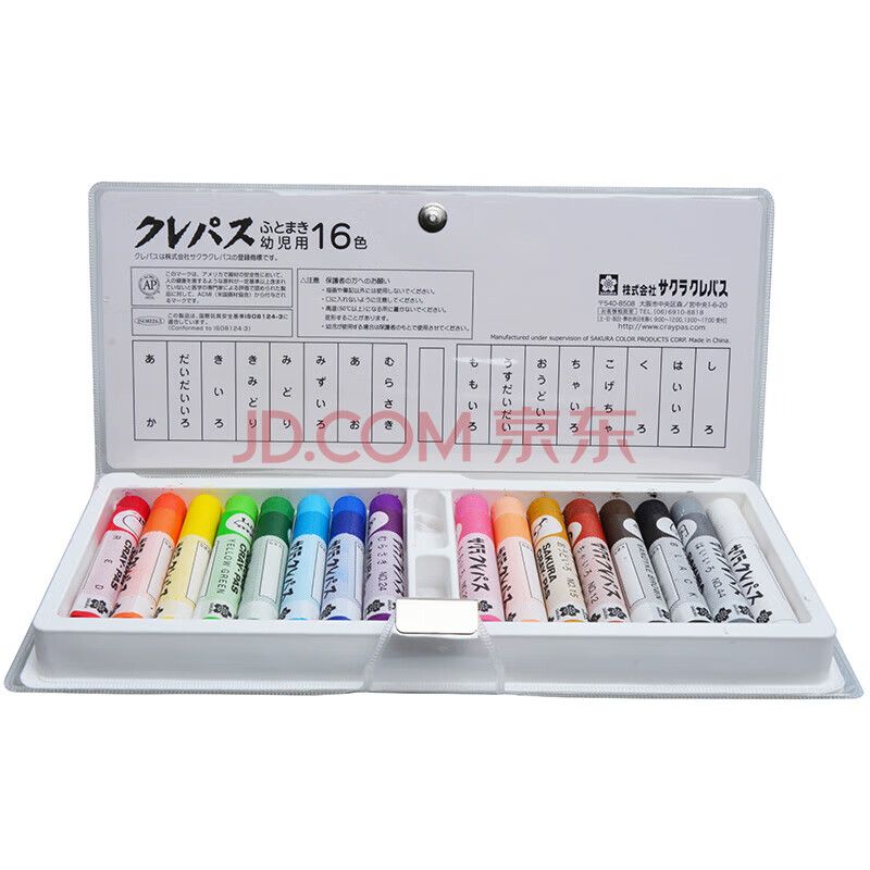 商品相册:樱花(SAKURA)油画棒幼儿款16色套装带卡扣塑料盒装儿童安全绘画画笔美术彩绘软性粉彩棒玩具礼物第