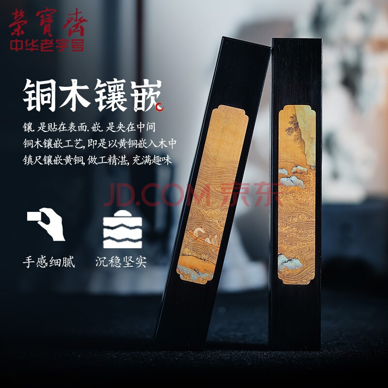 商品相册:荣宝斋【全网低价】 镇尺 紫光檀实木掐丝螺钿古风镇纸 中式文房四宝学生毛笔书法绘画压纸 赤壁赋对镇第