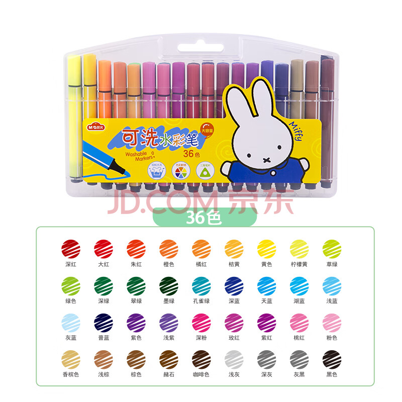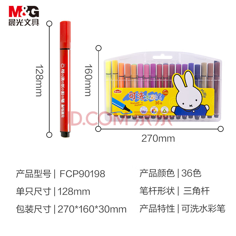 商品相册:晨光(M&G)(M&G)文具36色三角杆大容量水彩笔幼儿园可水洗儿童绘画涂色涂鸦米菲开学礼物FCP90198第