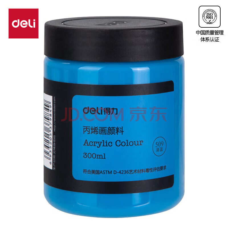 商品相册:得力(deli)湖蓝丙烯颜料300ml大容量墙绘手绘DIY画画DIY丙烯画大桶装大瓶美术绘画美育工具第