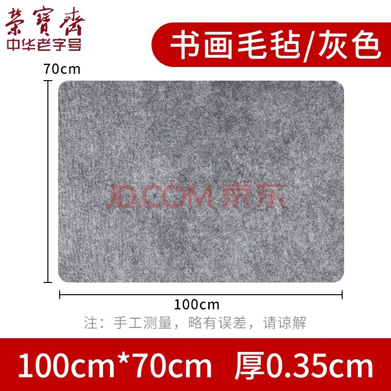 商品相册:荣宝斋 书画毛毡垫 加厚初学者学生写毛笔字垫布 练字文房书法国画专用 化纤毛毡 灰色70*100cm第1张/共9
