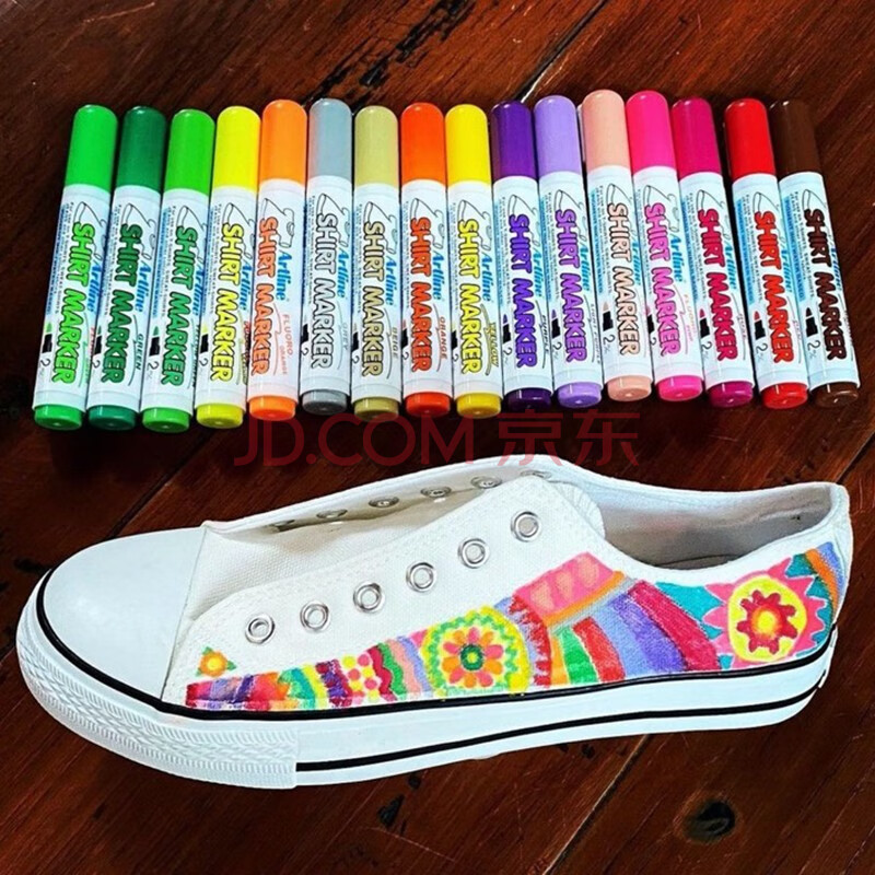 商品相册:【全网低价】旗牌(Shachihata)DIY纺织颜料衣服布料手绘涂鸦绘画T恤笔 双头 2.0-5.0mm 荧光橙/蓝 EKT-25TT美术写生第1张/共8
