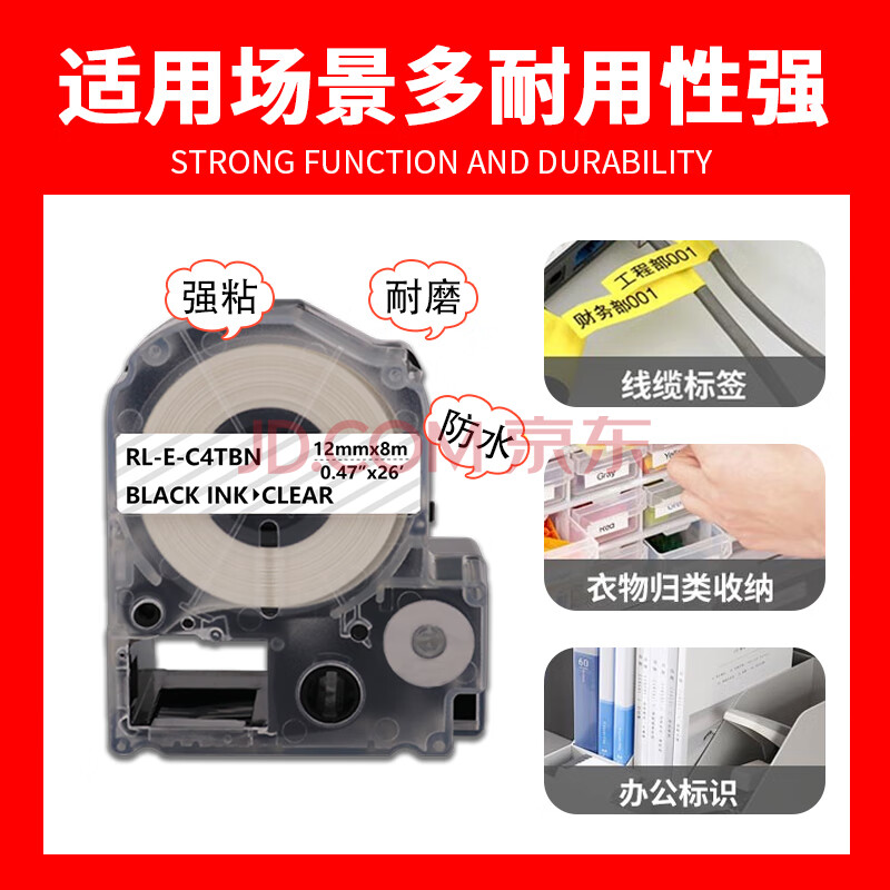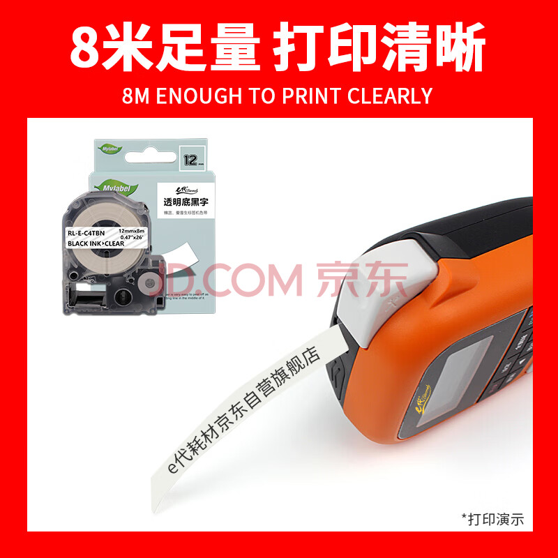 商品相册:E代标签色带适用爱普生12mm透明底黑字标签纸LW-K400标签机600P 1000P C410 Z700 Z900锦宫打印机第