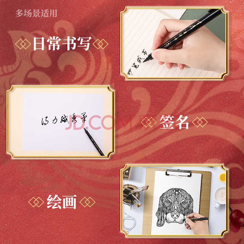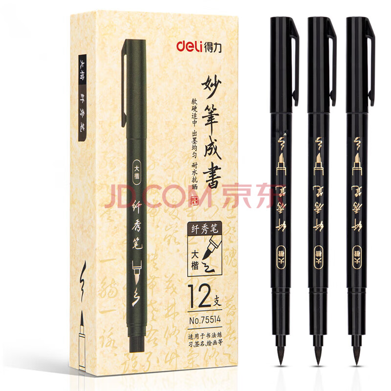 商品相册:得力黑色大楷纤秀笔秀丽笔毛笔练字笔 软笔签名绘画学生成人书法练习笔开学礼物 12支/盒开学用品第