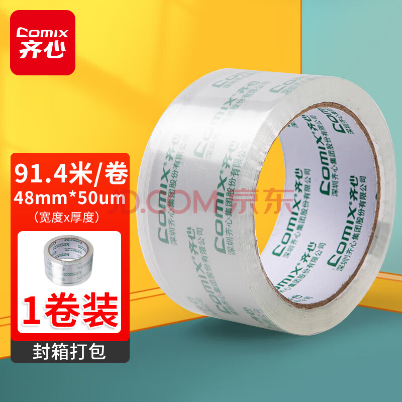 商品相册:齐心(COMIX)透明胶带/宽胶带/封箱胶带高透明打包胶带透明 1卷宽48mm*100y*50um长91.4米/卷 JT4810第