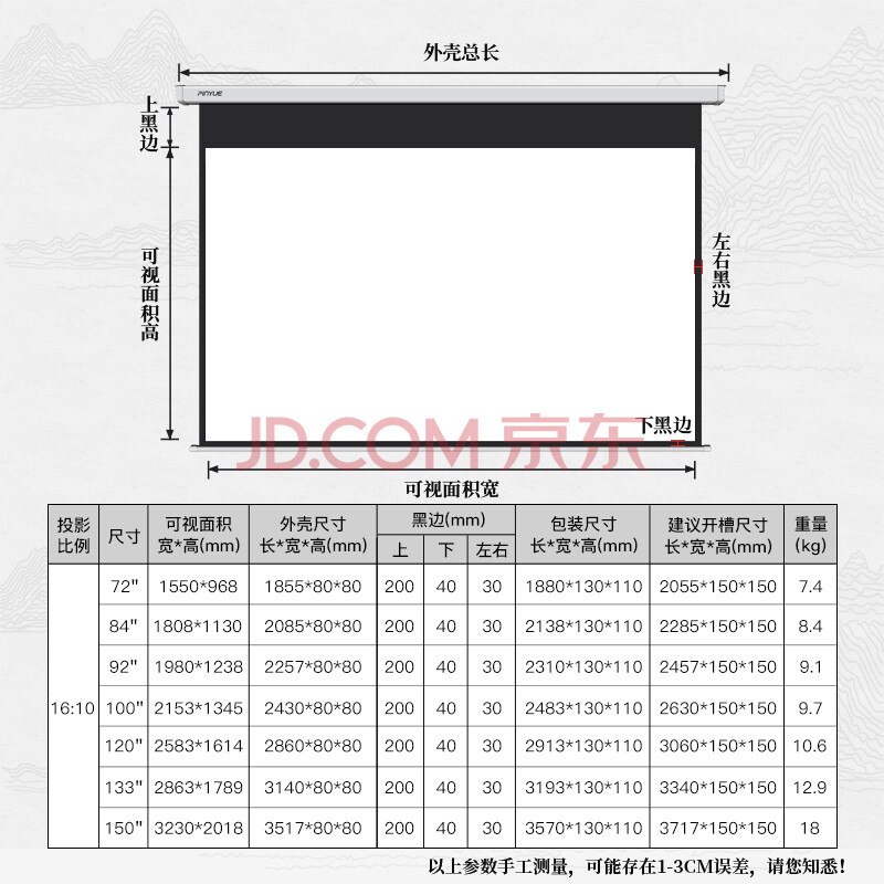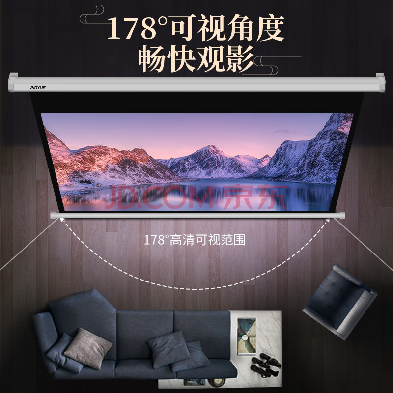 商品相册:品跃(PInYUE)H6电动投影幕布72英寸16:10遥控投影仪幕布办公家用投影机屏幕投影布白壳第