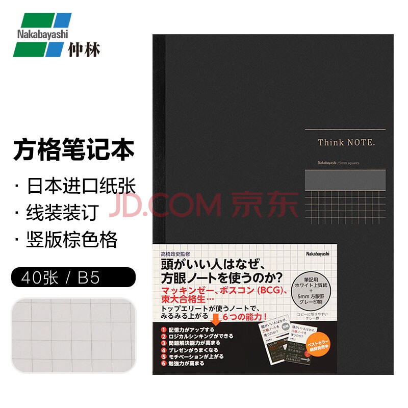 商品相册:Nakabayashi仲林方格笔记本B5记事本40页横版竖版格子小学生作业本高颜值日记本 B5/40张竖版灰格第