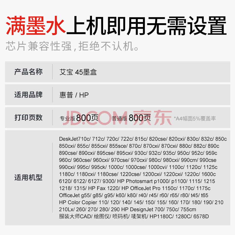 商品相册:艾宝 51645a墨盒 HP45A墨盒黑色 适用服装CAD绘图仪喷码机 惠普1180C 710c 712 720c 815c 830c 850c 870cxi第