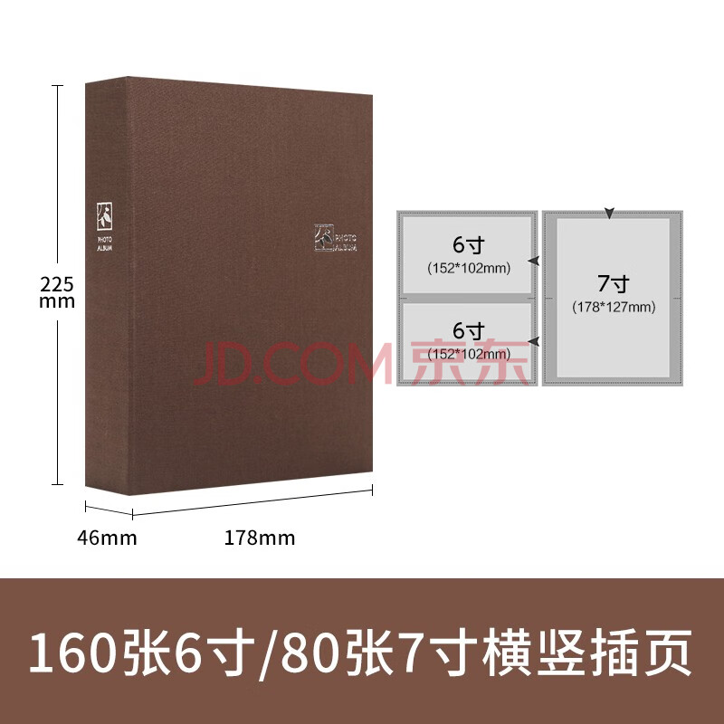 商品相册:Nakabayashi仲林插袋式布艺相册160张6寸/80张7寸混装/小容量影集/家庭相薄照片书 棕色 NBPK-KG160-BR第