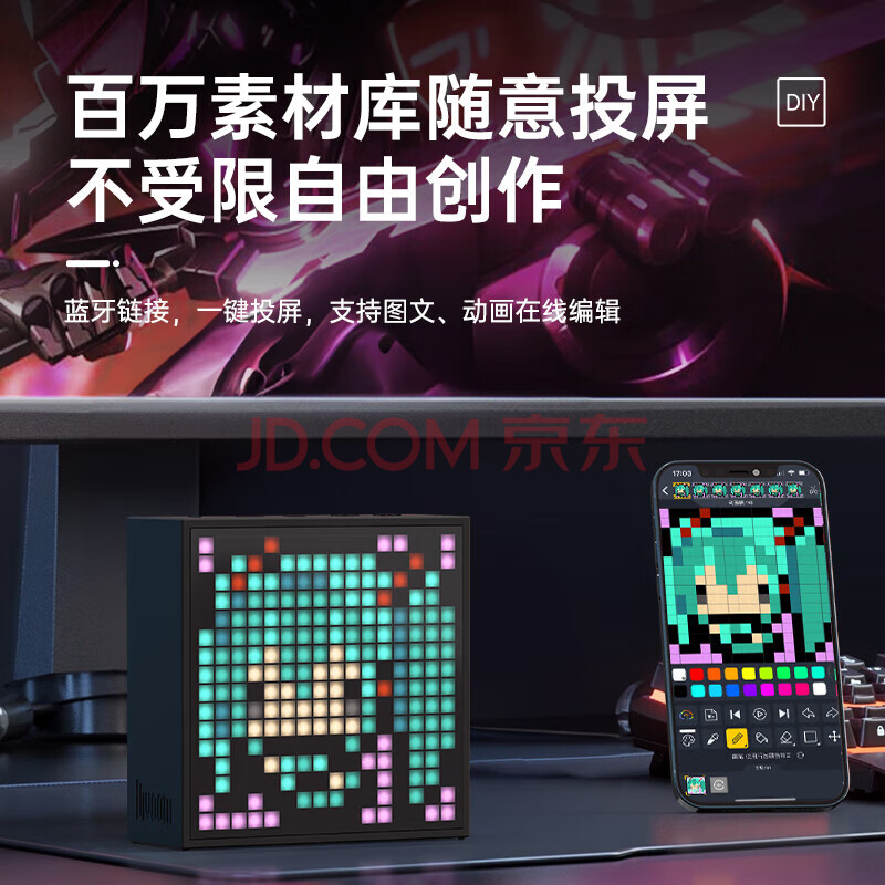 商品相册:Divoom点音EVO蓝牙音箱像素桌面摆件歌词迷你闹钟电竞电脑小音响家用低音炮科技感桌搭男生生日创意礼物第
