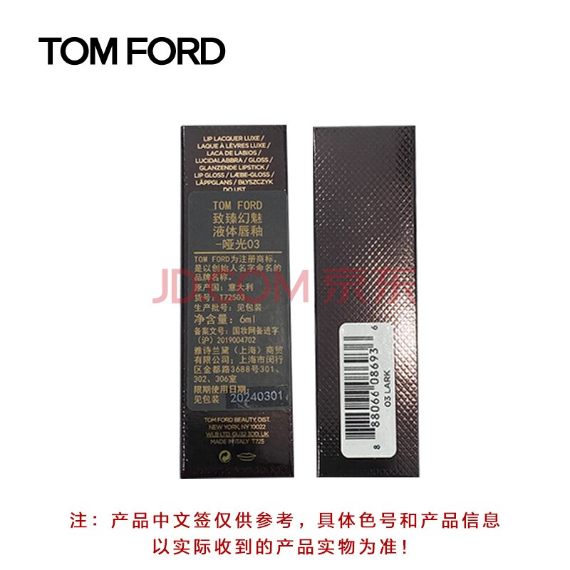 商品相册:汤姆.福特(TOM FORD)致臻幻魅液体口红03#LARK 6ml(TF方管口红03 TF口红奶咖玫瑰 缎光 生日礼物礼盒送女友)第