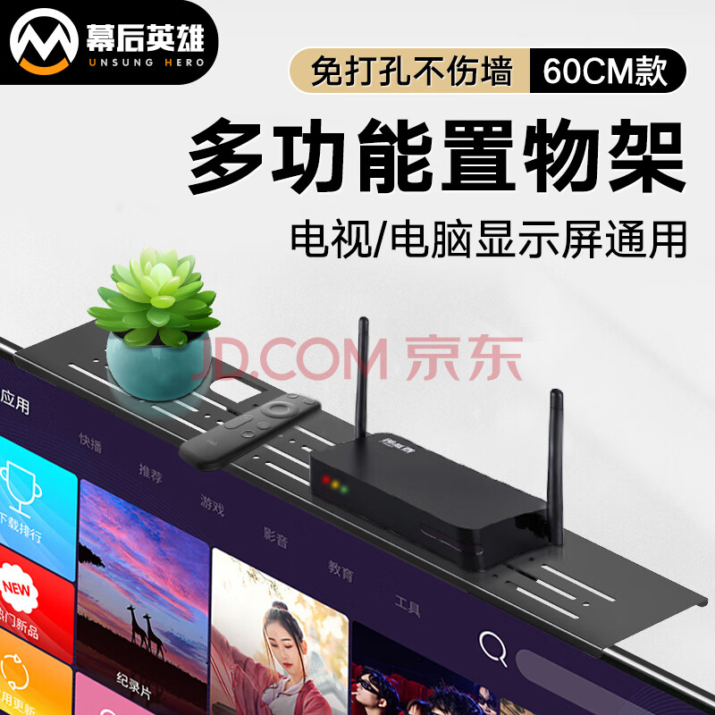 商品相册:幕后英雄 电视机显示器路由器置物架 电视顶托收纳架免打孔机顶盒路由器游戏机电视盒子机顶盒支架 中号第