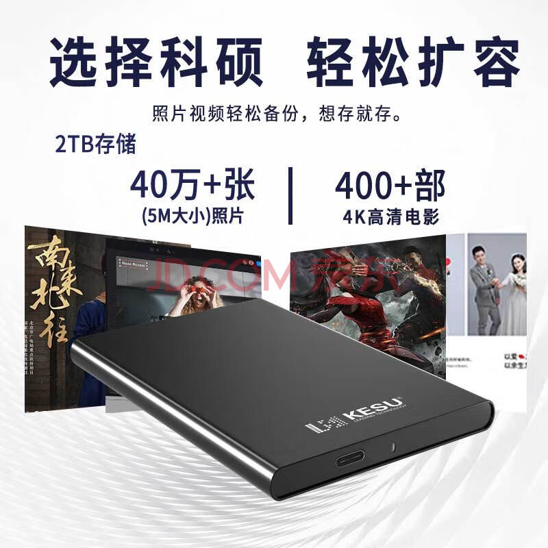商品相册:科硕(KESU)2TB 移动硬盘 USB3.1 大容量外接机械硬盘 海量存储 笔记本电脑手机连接 2.5英寸 家庭存储办公第