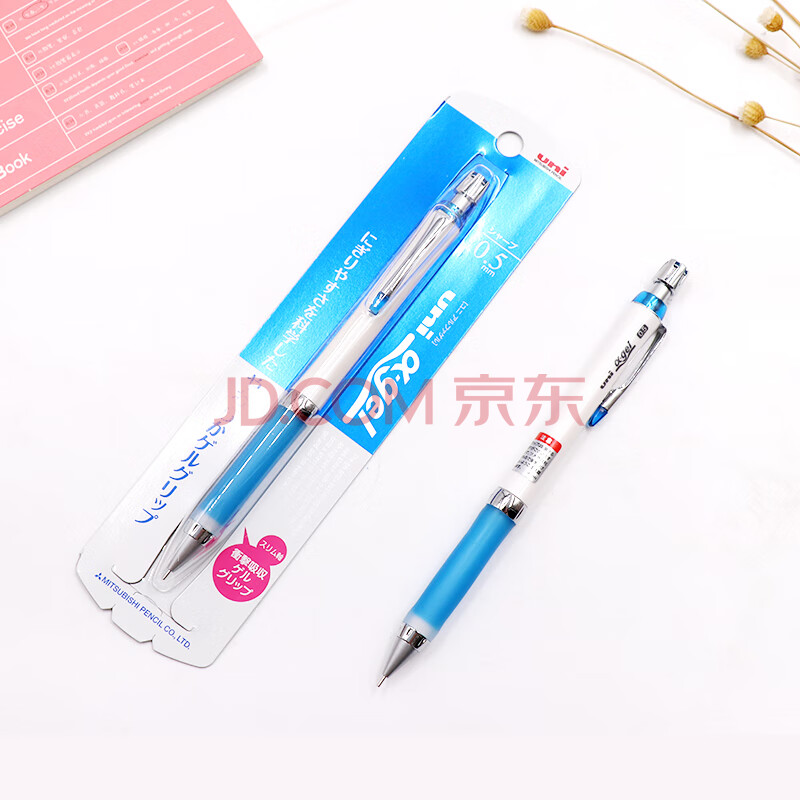 商品相册:uni三菱自动铅笔活动铅 0.5mm不断铅绘图学生铅笔带橡皮擦头 蓝色(白杆蓝胶)M5-807GG 1支装第