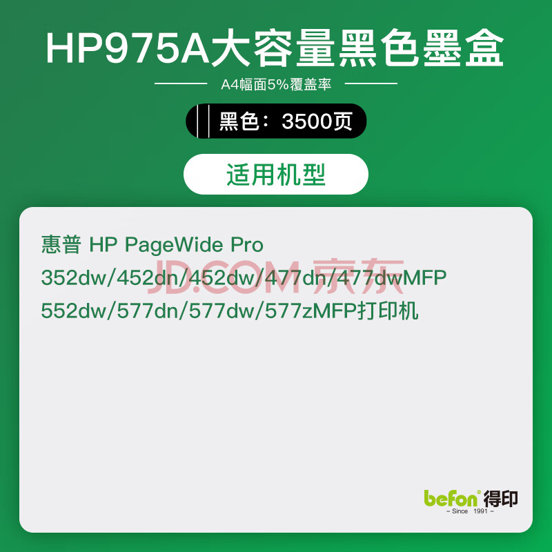 商品相册:得印HP975A墨盒 黑色 大容量 适用惠普HP577dw/577z/477dwMFP/552dw/452dw宽打印机第