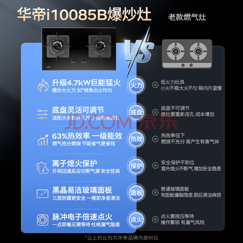 商品相册:华帝燃气灶天然气嵌入式一级能效熄火保护4.7kW猛火煤气灶灶具灶台i10085B【天然气产品】第