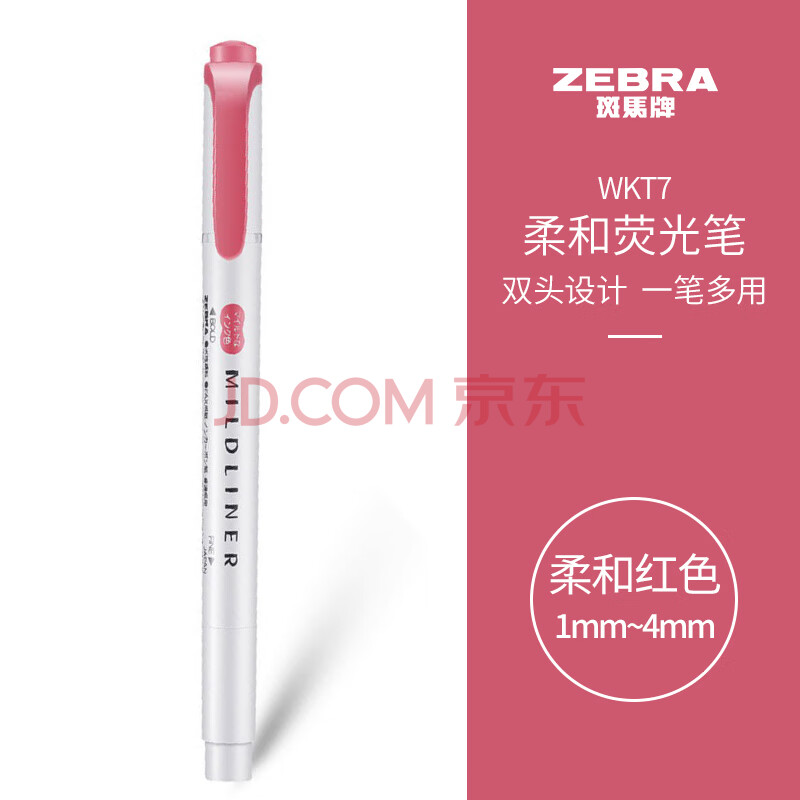商品相册:斑马牌 (ZEBRA)双头柔和荧光笔 mildliner系列单色划线记号笔 学生标记笔 WKT7 柔和红第