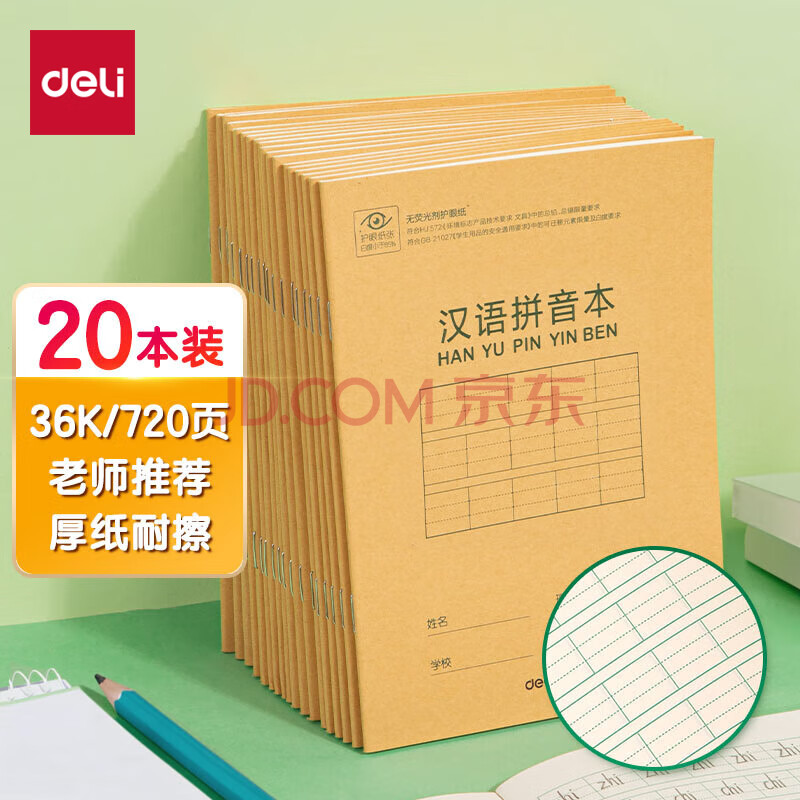商品相册:得力(deli)36K18张9行7列63格小学生汉语拼音本作业本软抄本笔记本子文具20本装D3620第