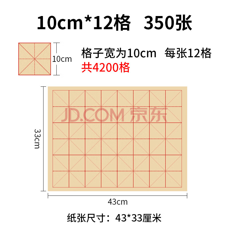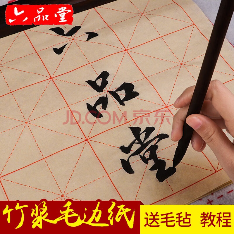 商品相册:六品堂宣纸书法练习纸写毛笔字米字格毛边纸批发加厚手工初学者专用【10*12格】350张送毛毡第