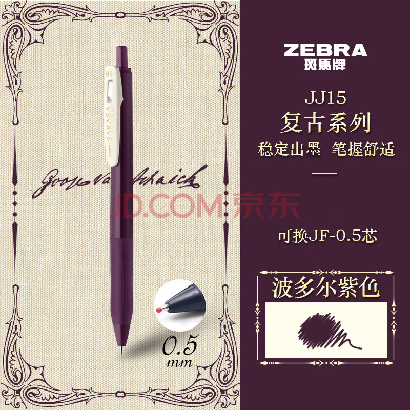 商品相册:斑马牌(ZEBRA)JJ15-V 新复古色中性笔 0.5mm按制签字笔笔 子弹头学生手账笔标记笔 波尔多紫第