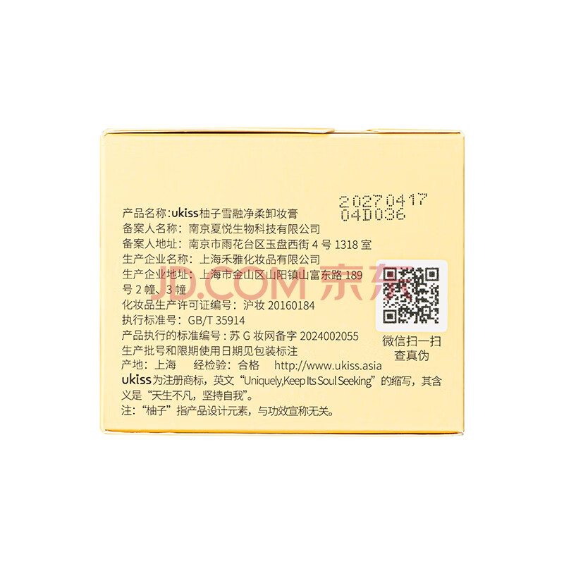 商品相册:悠珂思(ukiss)柚子卸妆膏120ml温和乳化清洁不刺激面部眼唇周边洁颜油新年礼物第