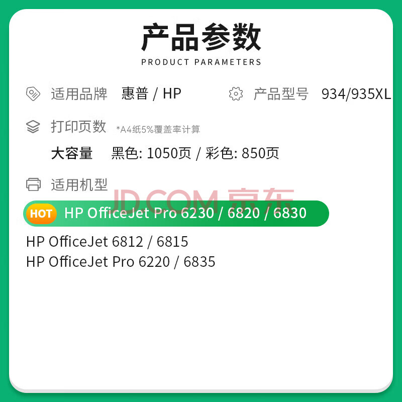 商品相册:才进适用惠普934XL墨盒黑彩色大容量OfficeJet 6230 6820 6830 6812 6815 6220 6835原装6810打印机墨水935XL第