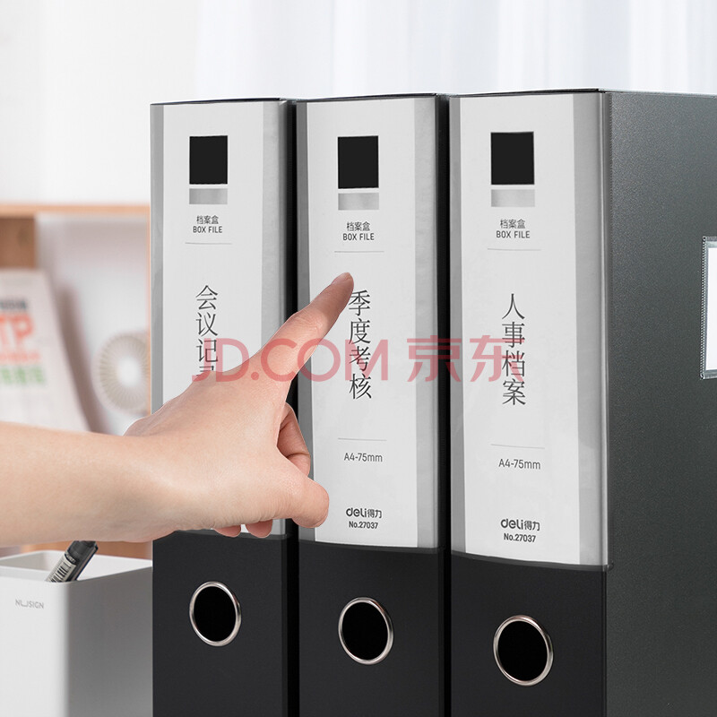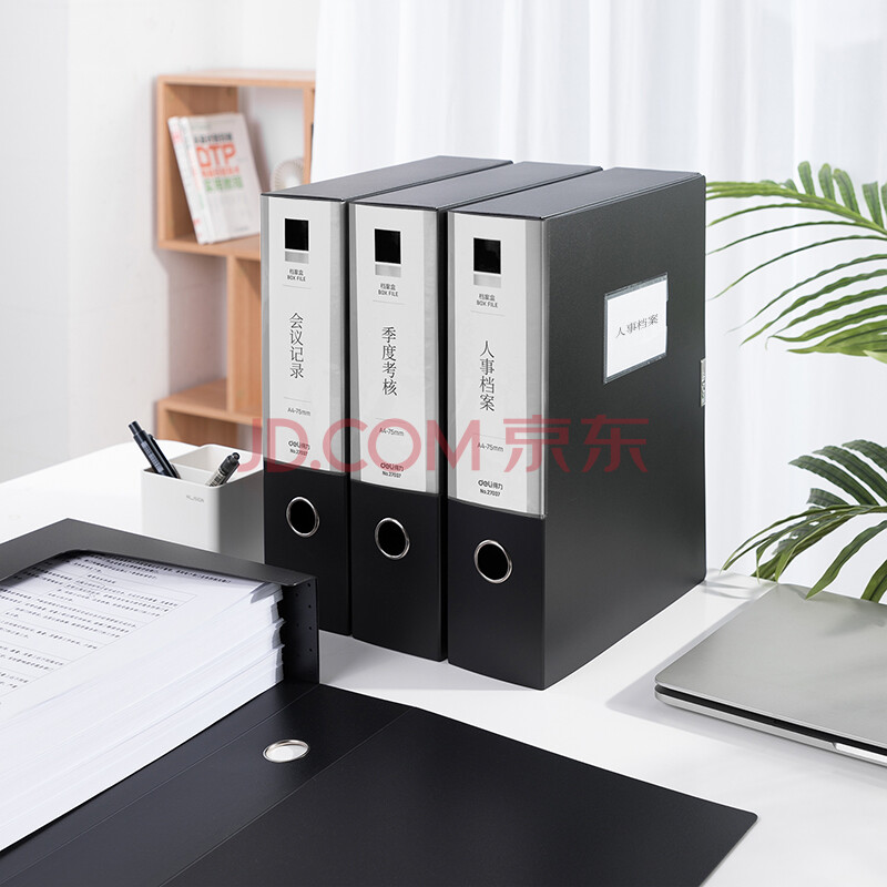 商品相册:得力(deli)10只75mmA4加厚PP粘扣文件盒档案盒资料盒凭证文件收纳盒财会用品27037黑色第1张/共7