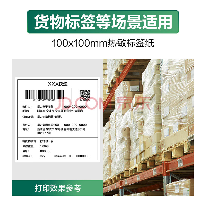 商品相册:得力100*100mm 500张*1卷 珊瑚海三防热敏标签纸 快递面单不干胶打印纸12001【适配4寸标签机888B等】第