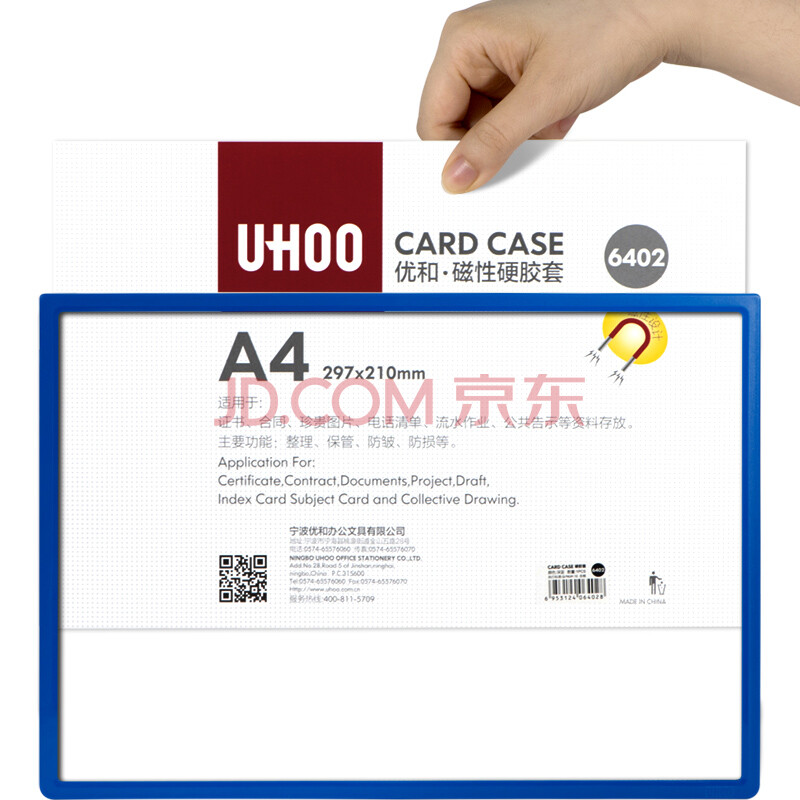 商品相册:优和(UHOO)A4磁性硬胶套10个装透明卡K士磁帖卡片袋文件广告展示贴营业执照框磁性标签卡套挂墙蓝色6402第