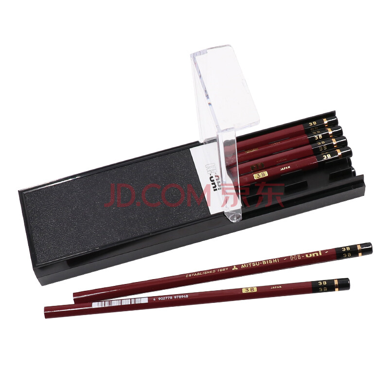 商品相册:uni三菱 素描绘画铅笔 学生铅笔HI-UNI木杆铅笔3B 12支装第