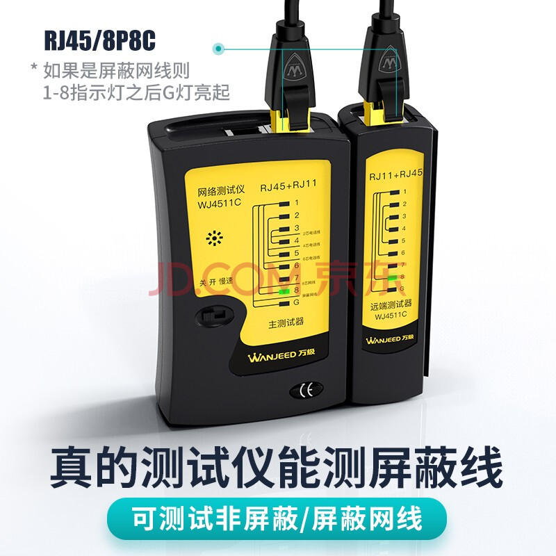 商品相册:万级网线测试仪 多功能测线仪测线器脑网络水晶头电话线工程 家用智能通断检测仪 黄黑WJ-4511C第