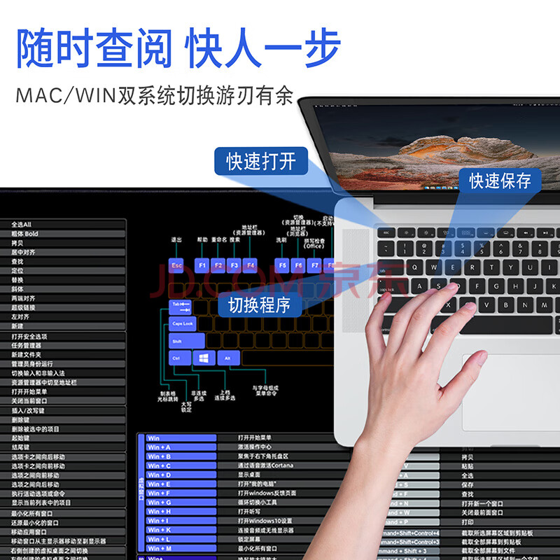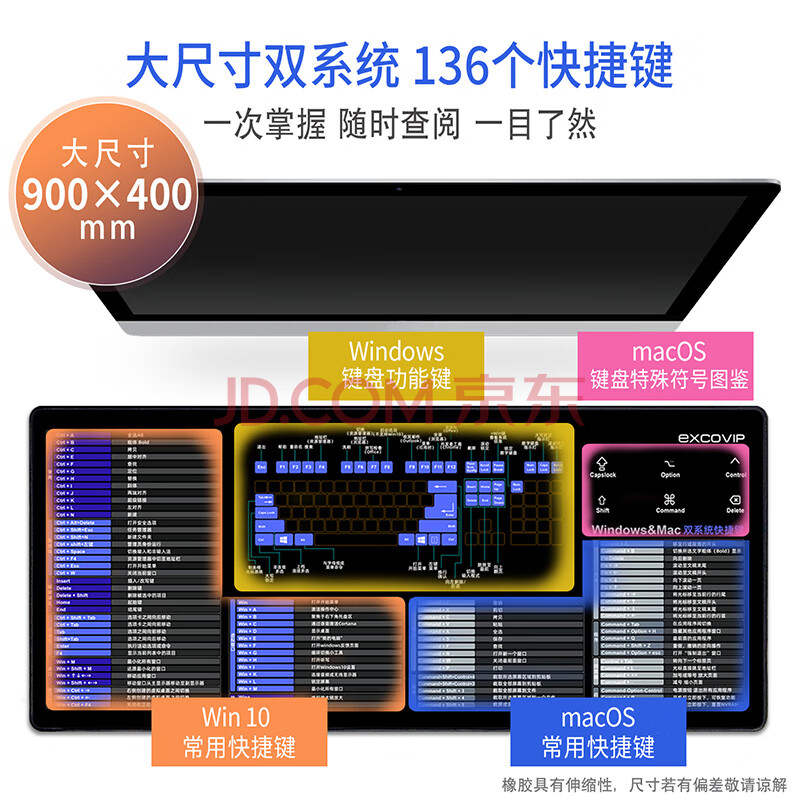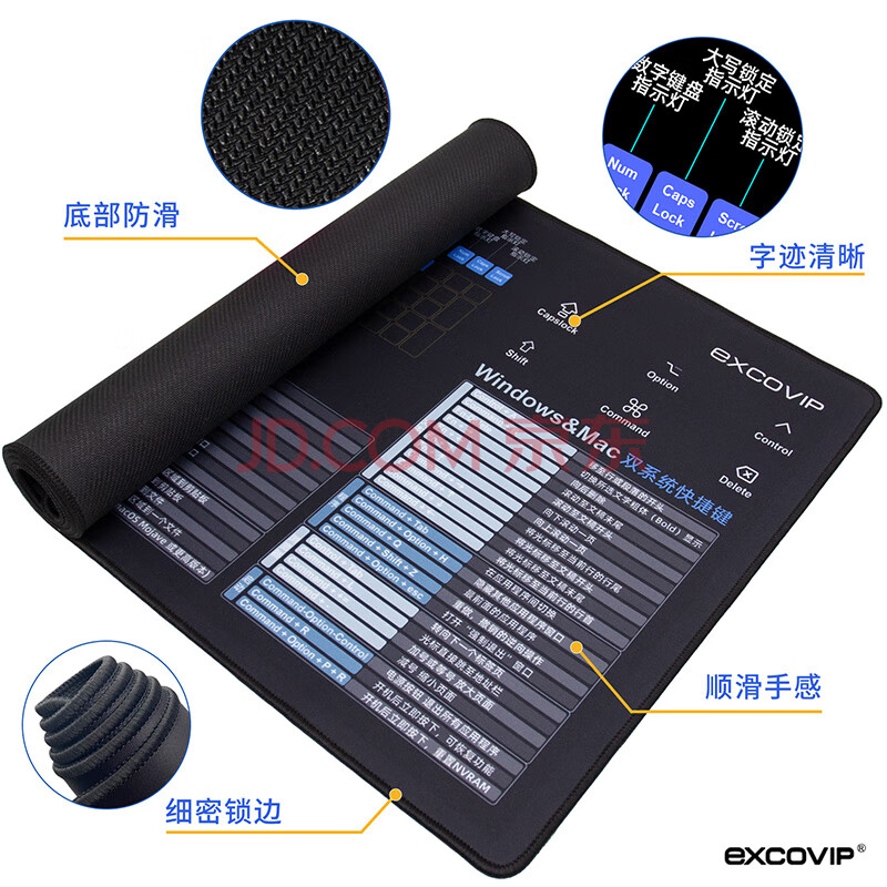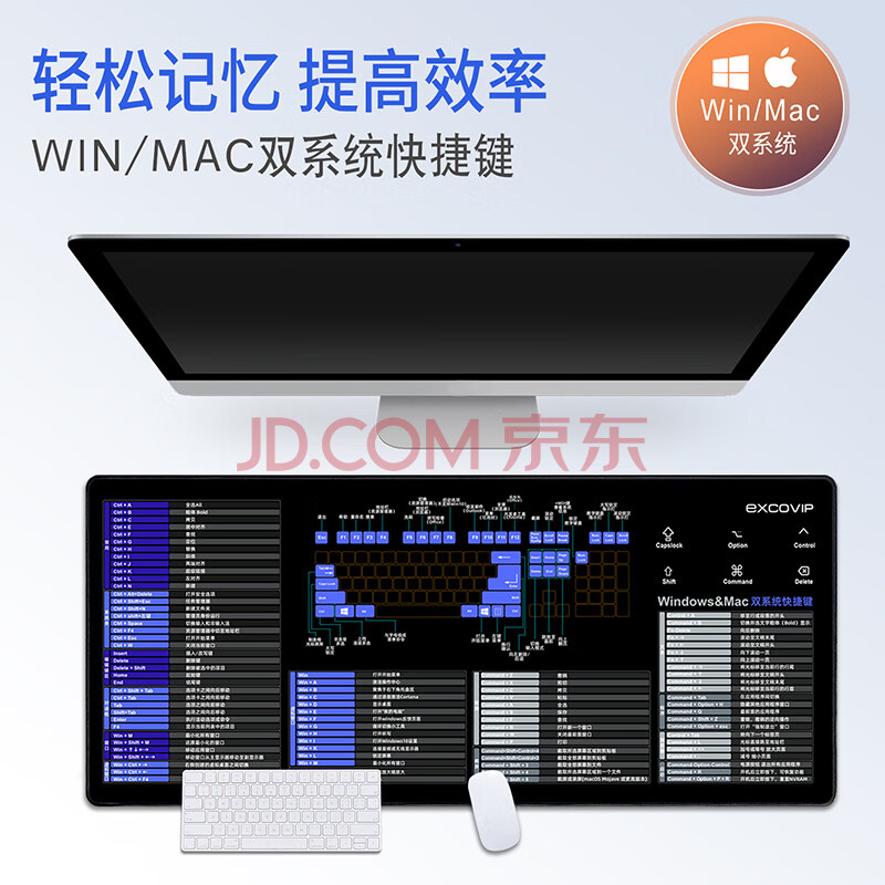 商品相册:宜适酷(EXCO)Mac双系统快捷键鼠标垫桌垫大号 win快捷键苹果电脑办公键盘垫锁边900*400黑色9132第