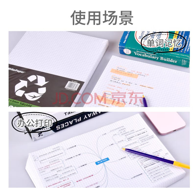 商品相册:凯萨(KAISA)A4/200张网格纸方格活页纸 思维导图纸活页本可打孔替芯草稿纸笔记本活页 1包第
